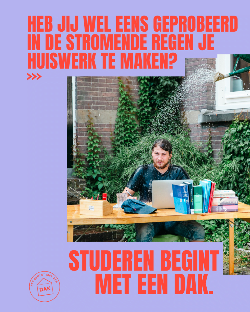 Of je nu werkt, studeert of voor je kinderen zorgt – alles begint met een dak. Op 10 oktober, Wereld Dakloze Mensen Dag, vragen we aandacht voor het groeiende probleem van dakloosheid. Samen met meer dan 80 organisaties bouwen we ‘Huiskamers zonder Dak’ door heel Nederland om het gesprek over woonzekerheid te starten.